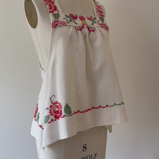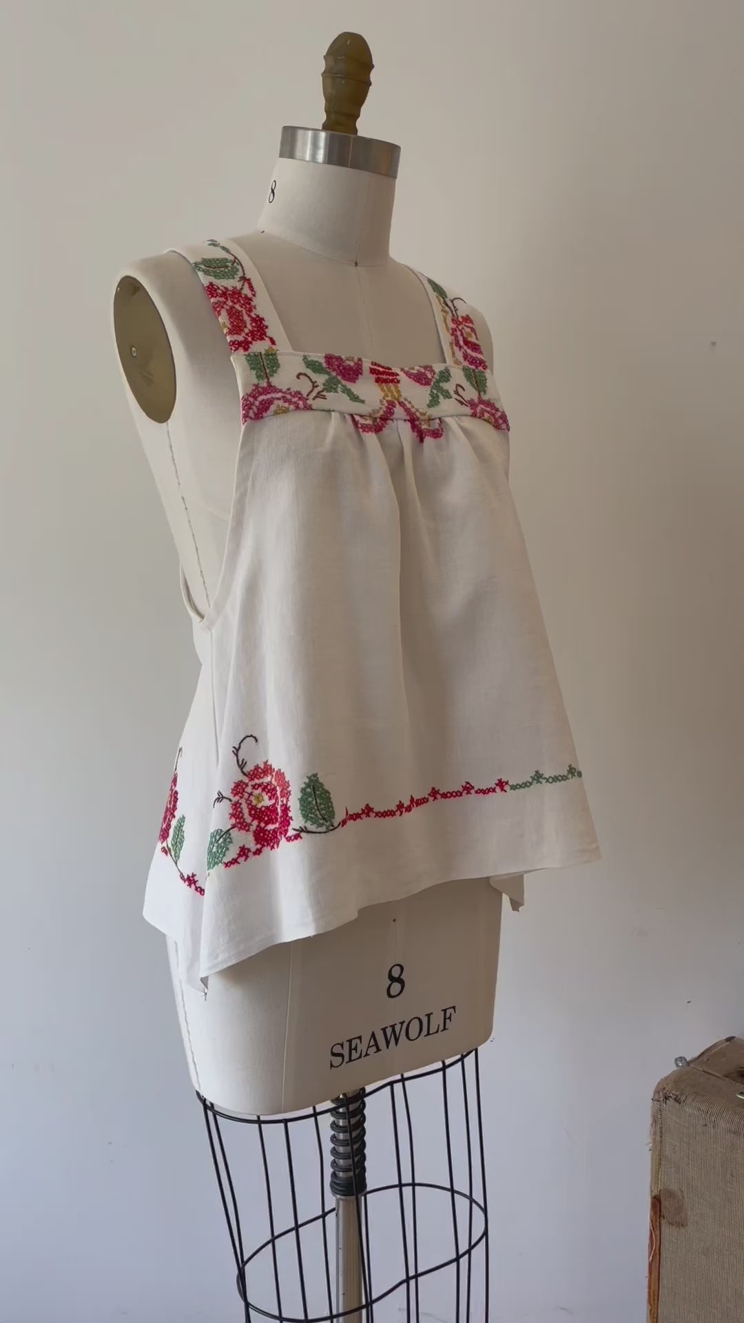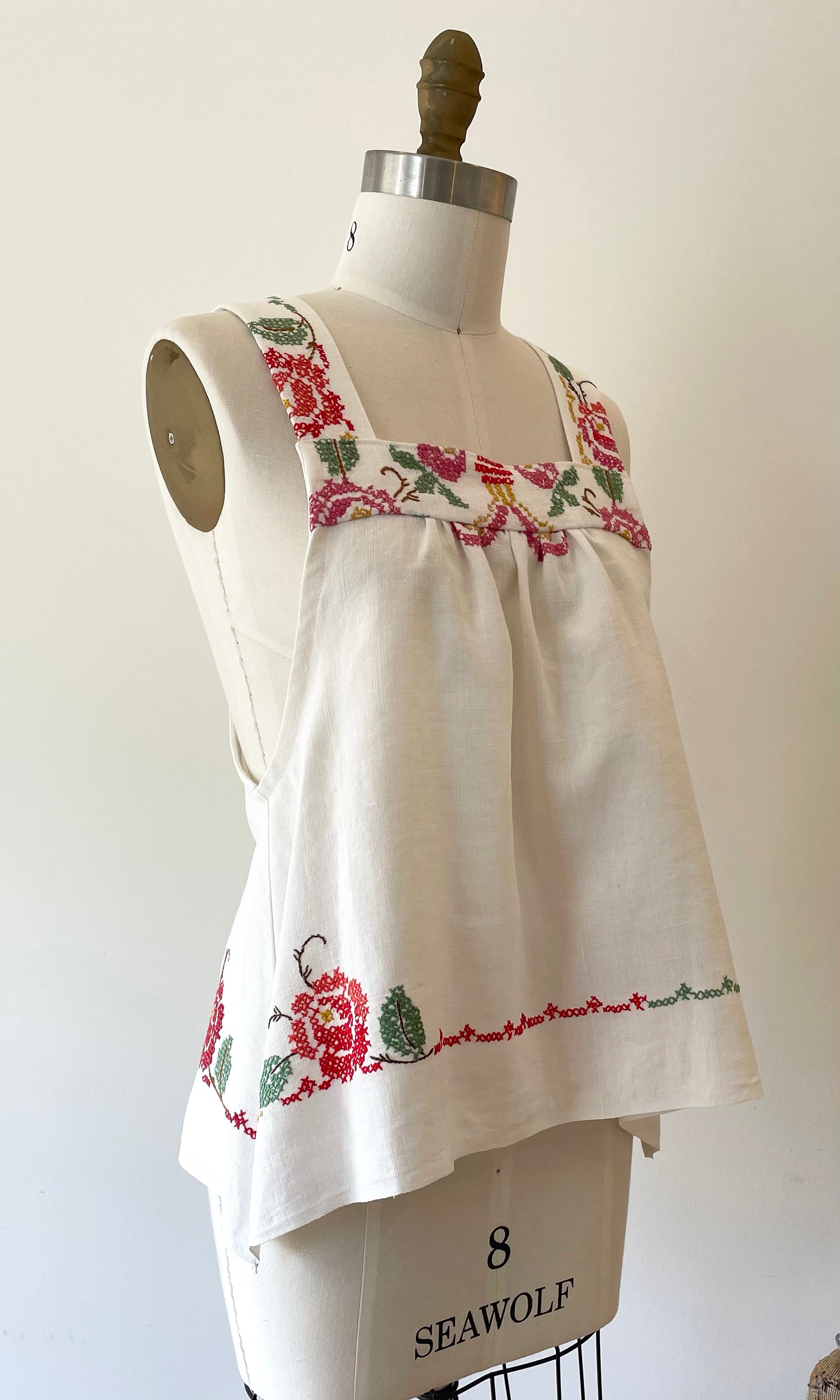 **This top is one-of-a-kind. Size S (measurements below). Made from a hand embroidered vintage linen tablecloth.**