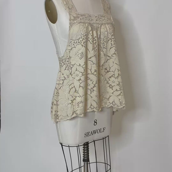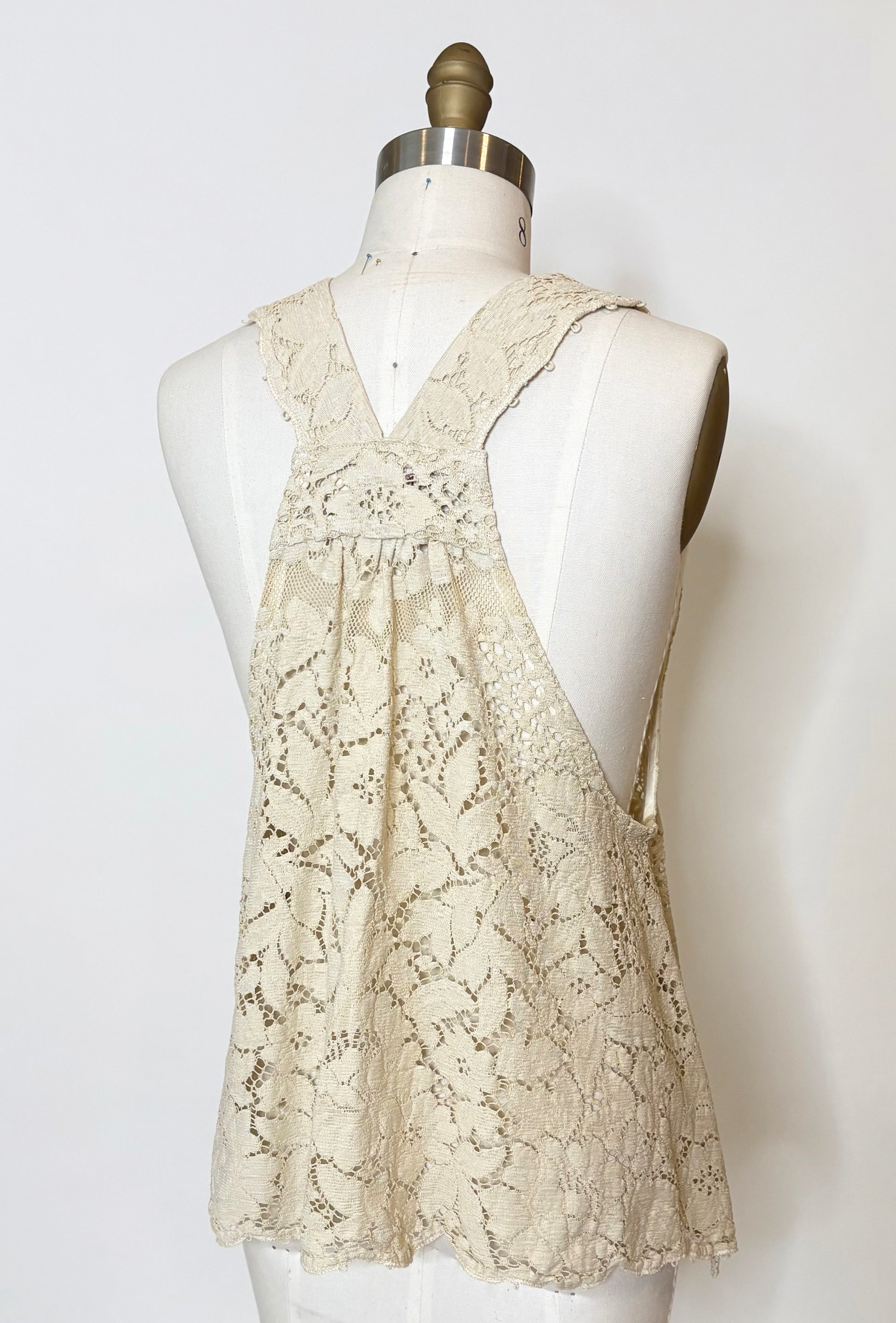 **This top is one-of-a-kind. Size S (measurements below). Made from a vintage lace tablecloth.**