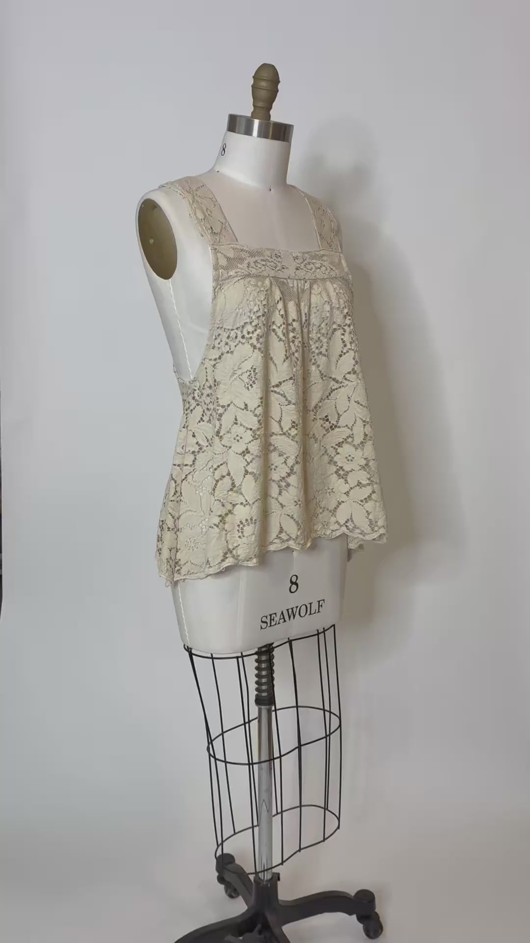 Easy-to-wear shape flatters a variety of body types. Please note, this top is cut very low at the arm holes & is made from lace. It is unlined.